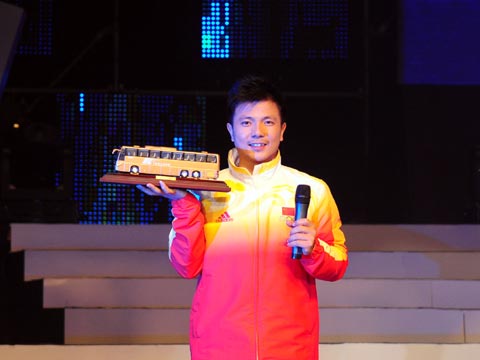 奥运冠军张湘祥,著名歌唱家金海心、李丹阳、汪正正等现场助兴,一次又一次地点燃了与会观众的热情,大金龙2000名员工及家属、各界嘉宾共4000余人共同分享了这一欢乐时刻。