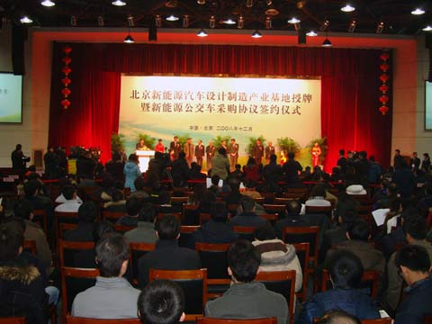 2008年12月28日,北京新能源汽车设计制造产业基地授牌暨新能源公交车采购协议签约仪式在福田汽车举行,国家科技部和北京市政府联合向福田汽车授予了北京新能源汽车设计制造产业基地牌匾,全国政协副主席、科技部部长万钢,北京市市长郭金龙等领导出席仪式。
