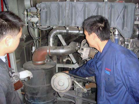 深圳宝运发公司对服务站的这种主动服务意识非常感谢,经察看后表示对中冷器进行更换。三位维修人员当即暂停正常更换水箱作业,开始主动积极的指导和协助宝运发公司的检修员进行该问题的维修。这时已至深夜,虽说是南方的深圳,但数九寒冬的深夜温度也降到了15℃以下,但三人还是冒着寒冷深夜在空旷的停车场进行维修作业。直到最后更换完水箱,东方的天空已经泛白。
