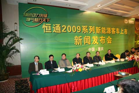 2009年1月9日,恒通客车以 “燃气畅行天下,绿色动力先锋”为主题的“2009恒通系列新能源客车新闻发布会”在渝隆重召开。