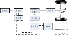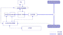 当车辆下坡和减速时,驱动桥传来的惯性扭矩,经变速箱带动电机运转,此时电机转换为发电机工作状态,所发出的交流电经逆变器转换为直流电,对电池组进行充电。