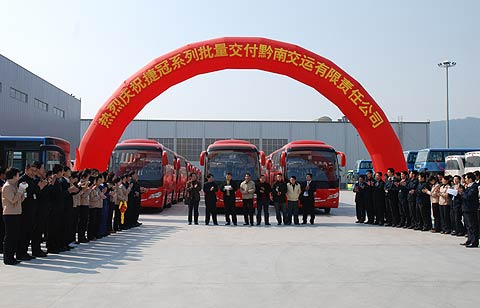 2009年1月15日上午,大金龙15辆捷冠系列XMQ6800Y中巴交付黔南交运有限责任公司发车仪式在大金龙厂区举行。贵州黔南交运有限责任公司董事长罗宁、大金龙副总经理徐向东等领导出席了交车仪式。