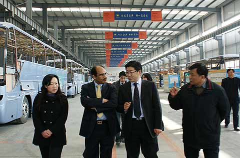 在考察过程中,徐连宽总裁向扎法尔先生介绍了中大汽车国际市场的开拓情况。中大汽车在2003年就已开展对巴贸易,并多次批量出口巴基斯坦,受到了当地客户的欢迎。