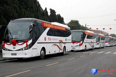 10辆满载着安凯人和所有客车人的绿色梦想开赴上海