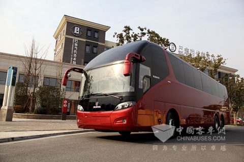 据了解,这辆“龙腾”礼宾车,是海格客车携手瑞典斯堪尼亚推出的代表国内豪华商务房车最高水平的客车。它是苏州金龙与瑞典斯堪尼亚建立深层次的战略合作关系,使用SCANIA•HIGER联合品牌的杰作之一。其中斯堪尼亚提供世界最顶级的客车底盘与技术,海格则负责整车的制造,双方强强联合,主打海内外高端客车市场。