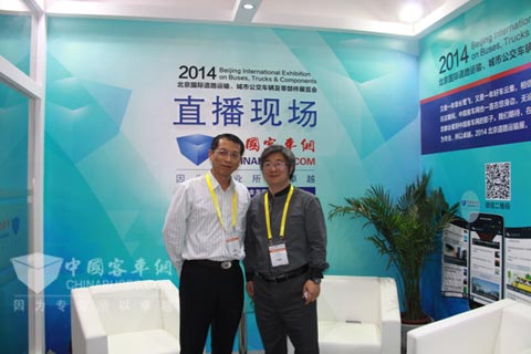 亚星客车市场总监张其建与江南网页版总编辑吴永强合影