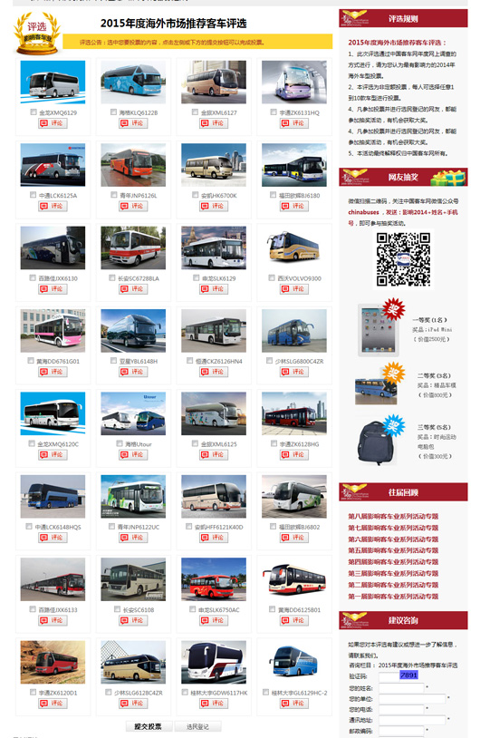 江南网页版读者调查评选活动之一“2015年度海外市场推荐客车评选”于2014年12月3日正式推出,开始接受国内外读者的投票。本次评选活动是由中国客车英文网与艾里逊变速箱联合举办。