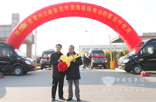 2014年12月23日,暖阳和煦。在海格昆山厂区门口,30台H6V纯电动轻客整装待发。采购该批车辆的客户为常州公路集团,此次共批量采购83台海格纯电动车,这是继38台海格纯电大巴和15台纯电考斯特之后的第三次交车。