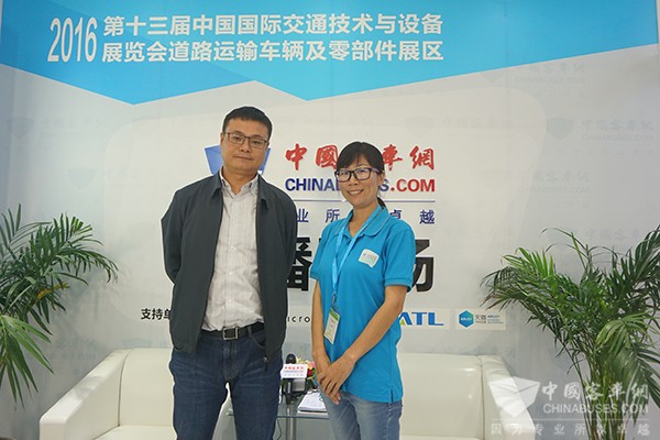 南京金龙副总经理徐迎春(左)接受江南网页版采访