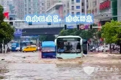 这次暴雨虽给大家出行造成了不便,但有力的验证了中车时代电动汽车在暴雨中的积水路段都能满足城市交通运营需求。即使大雨把你变成了“海”,我依然涉水而行。