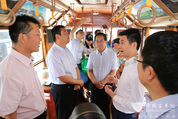 银隆新能源近年来以世界领先的“银隆钛”技术与整车制造技术,在公交行业的知名度与影响力不断扩大,先后成功与北京、西安、邯郸、珠海、汕头、湛江等城市达成合作协议,无论从产品的外观设计、核心技术应用,还是运行安全、商业模式等,均获得了良好的市场反响。为此,在启动仪式结束后,交通运输部运输服务司副司长蔡团结、许昌市人民政府市长胡五岳等主要领导马上移步到银隆新能源的展位前,珠海银隆新能源有限公司市场部总经理张斌向各位领导介绍了“银隆钛”技术及其在新能源汽车电池的运用中具有6分钟快速充电、耐宽温(-50℃-+60℃),十年循环使用寿命、不起火不爆炸高安全性的优势,领导们在了解后纷纷对“银隆钛”技术表示认可,随后,领导们还一同登上铛铛车,不少领导一眼就认出了这是在环北京旅游观光线的铛铛车,也曾乘坐过,大家在车上参观体验的同时,认为复古铛铛车蕴含的浓厚时代气息非常贴近“魏都”的古城气质。