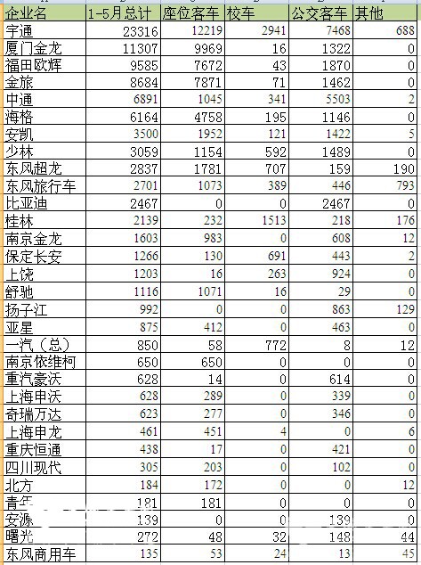 2016年1-5月,国内客车总销量100805辆,其中座位客车54638辆,公交客车30470辆,校车8519辆。由于政策环境的不明确,2016年1-5月同比增长率不及2015年。下面,江南网页版用数据分析前五月销量情况及市场流向。