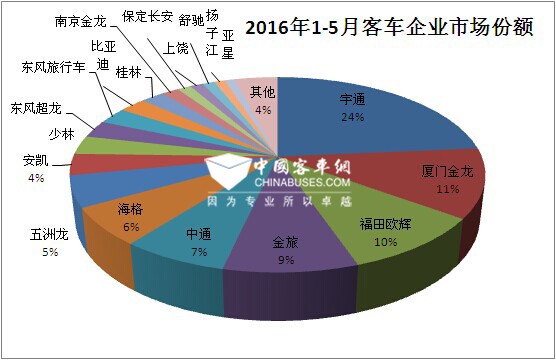总结:2016年前五个月客车市场,宇通、厦门金龙、福田欧辉领先,宇通保持着绝对优势。“三龙两通”占据超半数客车市场份额,主流客车占据大部分市场的局面未有改变。值得注意的是,福田欧辉超越金旅,跻身市场销量前三;在5月份销量最多的地区河南2360辆,宇通客车占据1651 辆。