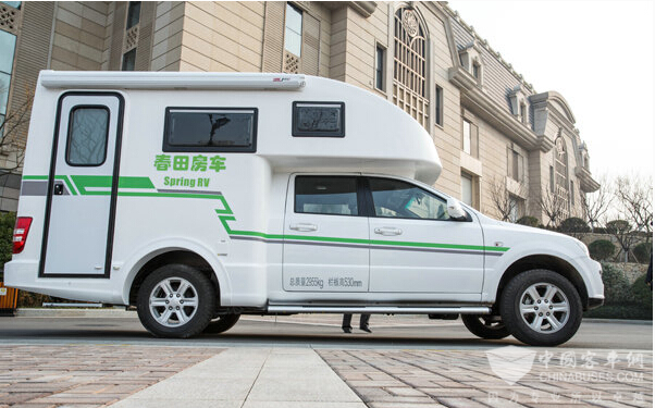 春田路豹房车是一款基于黄海大柴身汽油双排皮卡作为承载底盘进行改装的自行式C型房车,黄海皮卡凭借未定的质量,不俗的承载能力以及成熟的底盘技术是国产主流皮卡之一。