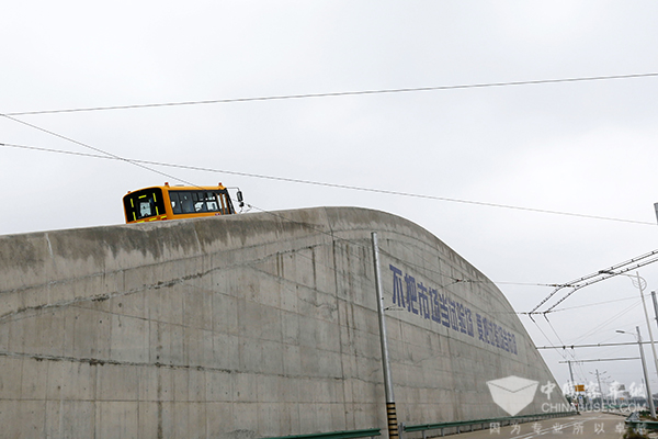 平稳驶过45°倾斜的路面,轻松爬上高4层楼、成30°角的高坡,再平稳下坡,整个试车过程虽不说惊险万分,但还是把围观的人惊出了一身冷汗。宇通驾驶员、质检员深知,完成这样高难度动作的危险性有多大,但为了孩子们的乘车安全,他们宁愿冒着这样的危险以检验每一辆新校车的安全性能。