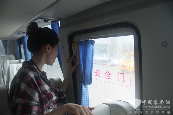 “和现有车窗相比,这种推拉式车窗可打开的面积更大,可供两人同时逃生,乘客也不用再砸碎车窗,节省了逃生时间,最快5秒钟内就可以逃生。”秦志东向江南网页版表示,“即不用砸碎玻璃,也节省了成本。但这种外推式车窗仅在发生紧急情况下使用,乘客不要随意开启,同时红色手柄上安装有自动报警装置,一旦被拉下,将自动发出报警声,提醒驾驶员。”