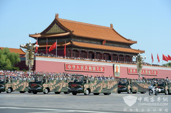 安凯敞篷宝斯通载着抗战老兵方阵驶过天安门广场接受检阅