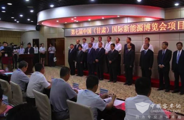 第七届新博会开幕仪式 会上举行了28个招商引资项目的集中签约仪式,签约总金额达556亿元,涉及新能源开发、装备制造、石油化工、商贸物流等行业和领域。其中新能源项目多达25个,签约额达500亿元,珠海银隆新能源有限公司在兰州投资建设的新能源汽车及电力储能项目名列其中。