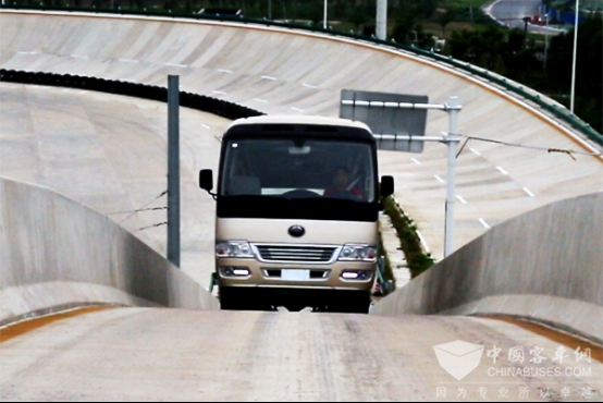 其实,早在上市前,宇通的技术人员就围绕T7的安全做了大量工作,比如它通过了侧翻试验,而且侧翻角度达到42°,高出了国家标准的35°,成为首款通过国家标准的半载侧翻试验的冲压车型,这就意味着T7可以载着宾客前往其他车型到不了的区域,做到真正的“全程服务”。