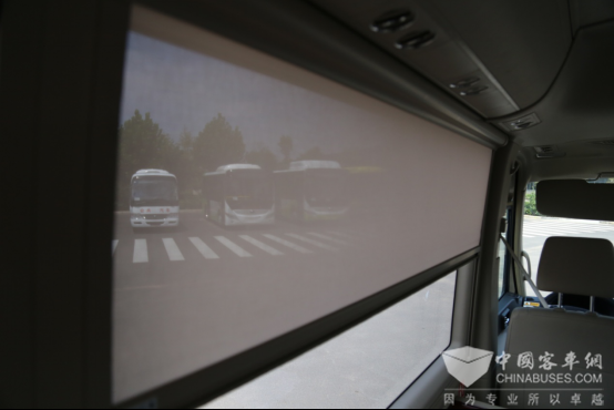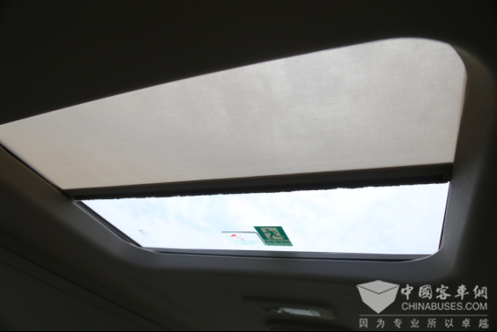 T7的推拉式窗帘和高铁上的窗帘并无二致,观景天窗也配备有手动遮阳帘,既能保证车内光线的通透,又不会过度直射,使宾客避免在太阳暴晒的座椅上听取汇报。据竞品车型车主反馈,由于其车上没有配备遮阳帘,他只能通过贴膜的方式避免太阳的直射,但效果并不理想,即便是贴了两层膜后在车内仍能感受到炎炎烈日,皮肤会有不适感。