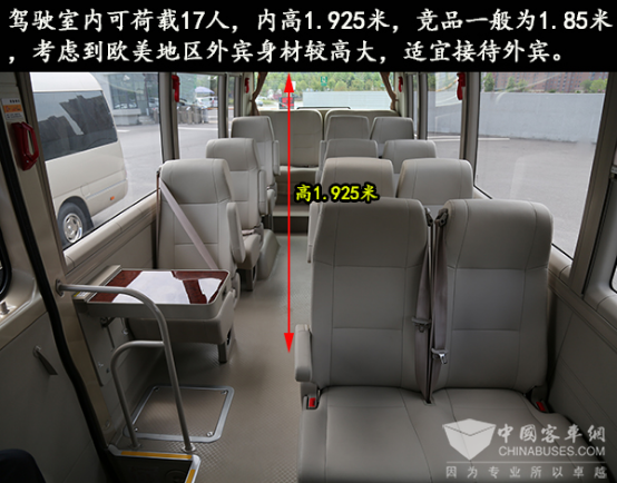 T7更大的车内空间也是舒适性高的保证,尤其是它的车内高度达到了1.925米,对于个子高的宾客来说,在T7车内行走不需要低头,从这一点上可以看出T7比其他车型更适合用于服务个头一般都较高大的外宾。