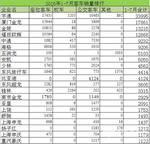 总结:2016年1-7月市场格局较之上半年相比,并未有很大变化,主流企业依然占据主要客车市场。据江南网页版调查发现,不少客车企业存在资金困难,国家补贴未及时到位的情况,与7月较低迷的客车市场有一定的关系。