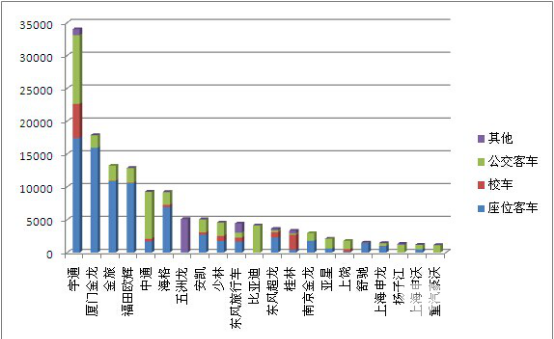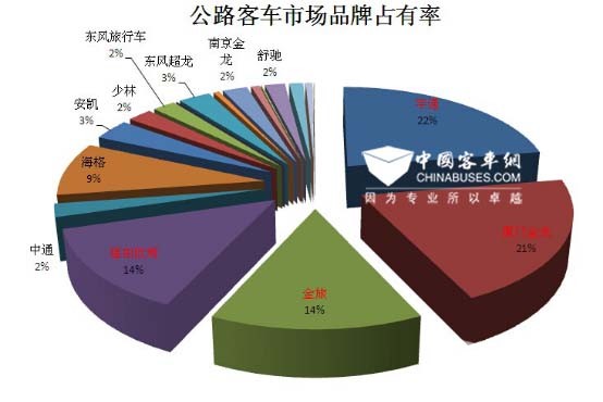 由图表看出,宇通、厦门金龙、金旅、欧辉占据主要公路客车市场,其中,欧辉与金旅市场占有率接近。