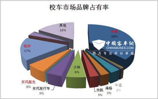 由图看出,宇通占据国内校车市场绝对优势,其中,桂林客车、东风超龙在校车市场表现突出。未来,校车市场将有巨大潜力。