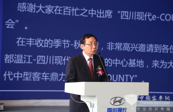 接着,四川省汽车运输成都公司孟胤铨副总经理作为用户代表发表了自己感受。“最早了解康恩迪中巴时,就被它的外观、内饰设计和性能所折服。年初采购的康恩迪,无论是产品品质还是售后服务,都感到非常满意。今天,看到四川现代推出e-COUNTY新品,非常经济实用,未来我们会继续关注四川现代新品,为公司发展采购更好的产品。”