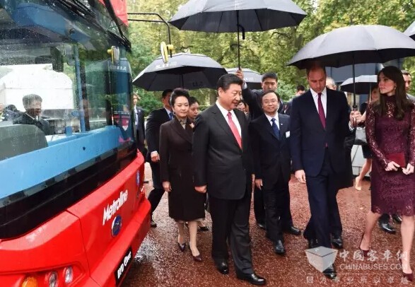 比亚迪电动双层大巴在英国接受中英双方国家领导人检阅