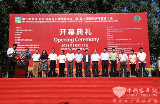 中国汽车工业协会秘书长吴绍明、北京市旅游发展委员会主任宋宇、北京市房山区区委常委、区政府副区长赵军、北京市丰台区区委常委、宣传部部长狄涛、房山区旅游发展委员会主任朱仕生、房山区长阳镇党委书记慈建民、丰台区旅游发展委员会副主任卢爱国、丰台区长辛店镇党委组织委员卢华德,以及中国汽车摩托车运动联合会汽车露营分会会长林洁、中国旅游车船协会自驾游与露营房车分会秘书长刘汉奇、中国汽车工业协会首席专家潘旭峰、中国汽车工业协会房车委员会秘书长房德和、中国国际贸易促进委员会汽车行业分会代表佟彤、北京房车露营自驾旅游协会常务副会长兼秘书长李艳、北京联合大学旅游学院党委书记曹长兴、台湾中华露营协会执行长石盛良、房建集团总经理武卫、21世纪房车创始人兼CEO王继东、德国国家旅游局、加拿大BC省旅游局及其他支持单位的领导等出席了开幕式。