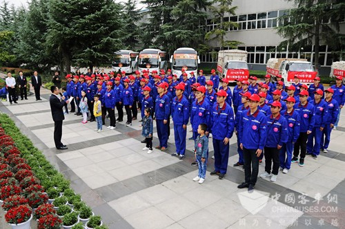 上午8:30分,在活动的发车仪式上,一首由宇通志愿者倾情演绎的《时间都去哪儿了》开启了在场所有人感恩父母的情感之门,也拉开了宇通儿女送孝心的温暖序幕。随后进行的是爱心传递仪式,宇通往届志愿者为新成员佩戴宇通志愿者徽章,喻示爱心传递,志愿者精神传承。8:40分,随着宇通客车党委副书记刘贵新的一声令下,12辆满载着节日温馨祝福和礼物的亲情车队分头奔向宇通各家属院和各村屯,标志着宇通集团第十二届重阳文化节正式启程。