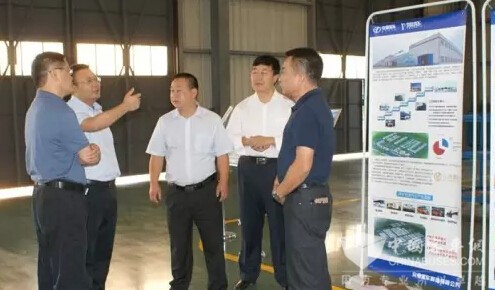 在调研过程中,安源客车副总经理刘建斌向黄强一行汇报了安源客车目前的产品营销、市场分布、新产品开发等情况。