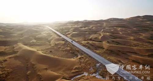 车友们开着御风房车在穿沙公路上行走,迎风驰骋、奔向远方,拥抱大漠温沙,这种奇妙的感觉很珍贵。
