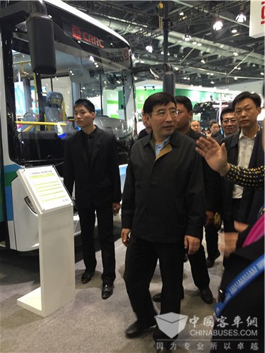 工信部部长苗圩到中车时代电动展台参观,面带微笑高兴的说:“中车还是很有实力的,再接再厉。”