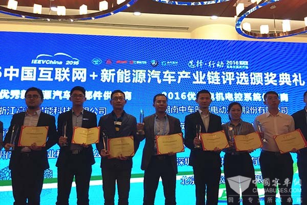 这个被誉为“世锦赛”的成果展还有一项工作,就是“2016互联网+新能源汽车全产业链颁奖典礼”。2016年10月16日下午3时许,颁奖结果出炉,中车株洲所旗下中车时代电动凭借扎实的技术实力和良好的市场表现,一举斩获“优秀零部件供应商”、“人气车型”等两项重量级大奖。这可是新能源汽车行业的权威大奖。