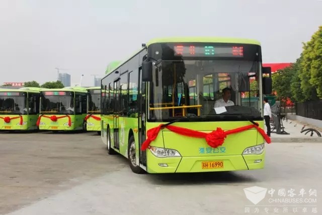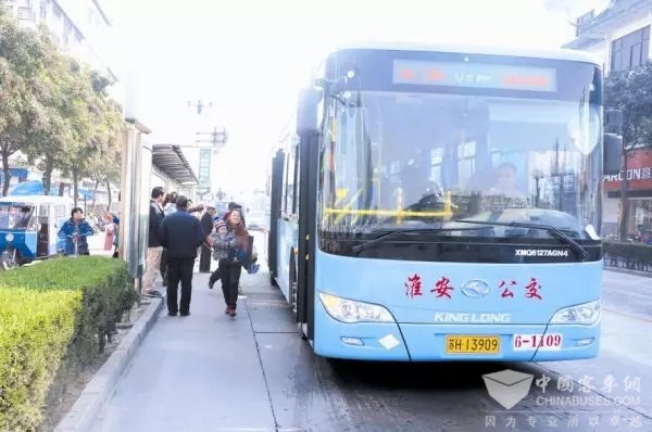 2016年1月1日,作为“民生工程”重大项目,淮安市完成公交国有化体制改革。重新组建的淮安公交以“环保、安全、智能”为思考点,新开通17条公交线路,优化9条公交线路,并对城区内传统动力客车进行“绿色替换”。今年3月首批投入运营的100辆金龙纯电动客车,为当地民众出行带来了全新体验。本批300辆插电式混合动力客车,也将投放到城区主干线路上运营。