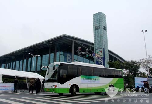 此次承担无锡物博会通勤服务的常隆纯电动客车的型号为YS6107BEV。