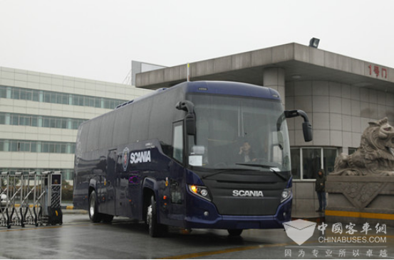 驶离海格客车厂区的斯堪尼亚•海格客车