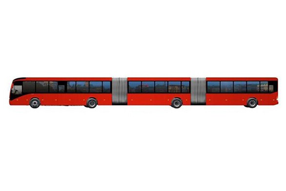 据外媒报道,沃尔沃将在巴西卖世界上最大的公交车Gran Artic 300,车辆可以载客300人,车长100英尺,约合30.48米。这辆公交车含三节车厢,由两个绞接连接。