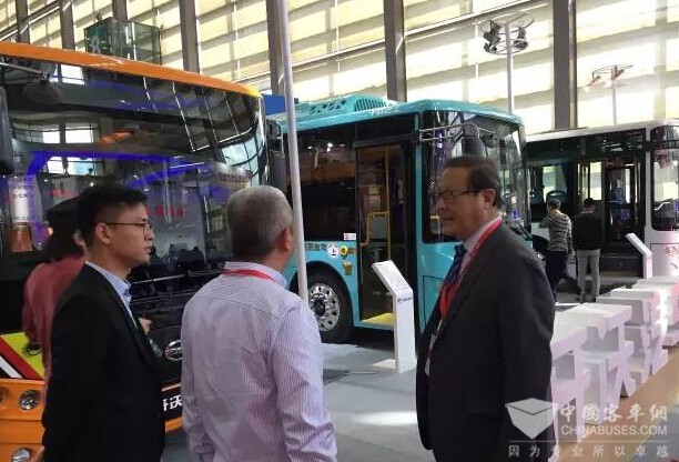 深圳粤运集团董事长禤宗民、技术副总杜卓才、技术部业务总监朱军和技术部经理吴兰钧,也纷纷莅临南京金龙展位。粤运集团董事长禤宗民在南京金龙副总裁金晓辉的陪同下试乘了展示的公交系列后,针对深圳市场为南京金龙提出来宝贵的意见。
