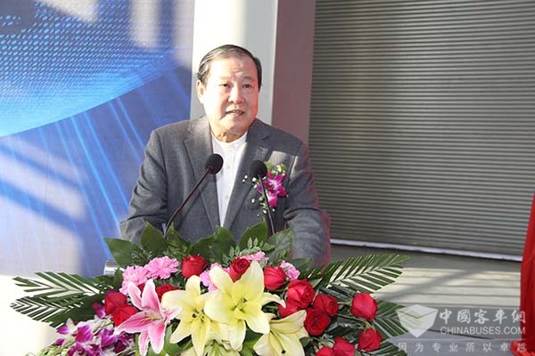 天津创研科技产业园投资有限公司董事长李宏和安凯客车总经理查保应共同为新车揭幕