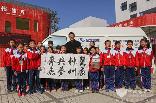 本站活动是“金龙移动图书馆”公益项目2016年的收官之站,交通运输部直属机关工会、中国交通报社等爱心伙伴,齐聚一堂,与金龙客车一同用一颗颗炽热的爱心共同启动了安远站“金龙移动图书馆”。著名旅游画家第一奇人——袁福顺先生,特别为“金龙移动图书馆”公益项目题词献字,为活动添墨加彩。