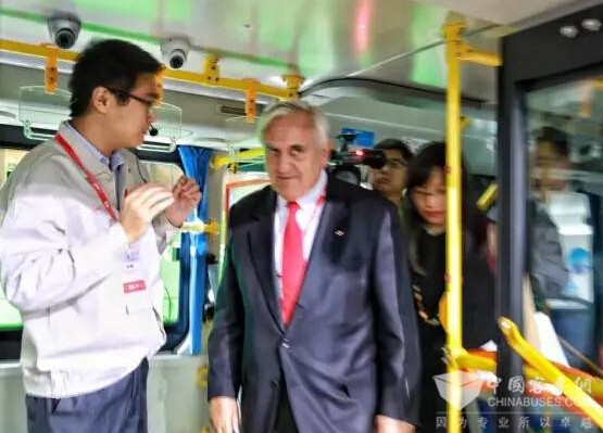拉法兰先生参观比亚迪K8S纯电动双层大巴