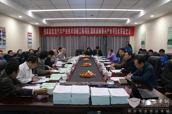 会议现场由国家新能源汽车技术创新工程专家组组长王秉刚、中国汽车工程学会秘书长张进华、中国工程院院士饶芳权、中国科学院院士闫楚良等11人组成的专家组,先是考察了中通新能源客车相关项目实验室,然后以会议答辩的形式,对三项科技成果进行了鉴定。中通客车总经理孙庆民、技术总监王钦普等参加了会议。最终,三项成果都顺利通过专家组鉴定,并上交工信部和项目专项办进行备案。