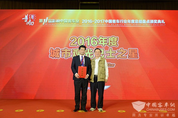 2016年12月23日晚,“第十一届影响中国客车业年度盘点活动”结果揭晓。珠海银隆客车凭借在2016年的杰出表现,荣获了“2016年度客车行业十大新闻”、“2016年度城市观光巴士之星”、“2016年度快充双源无轨电车之星”三项大奖,奖项的获得体现了客车用户、业内专家和新闻媒体对于珠海银隆的充分肯定。