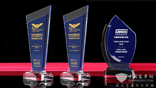 2016年12月23日,由中国土木工程学会城市公共交通分会与江南网页版联合主办的“第十一届影响中国客车业年盘点活动”结果出炉,金龙客车荣获“2016年度影响力之星”3项大奖:“2016年度中国客车海外市场泰国之星”、“2016年度安全之星”和“2016年度零排放客车之星”。