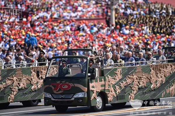 抗战胜利大阅兵,老兵乘坐安凯宝斯通敞篷车受阅