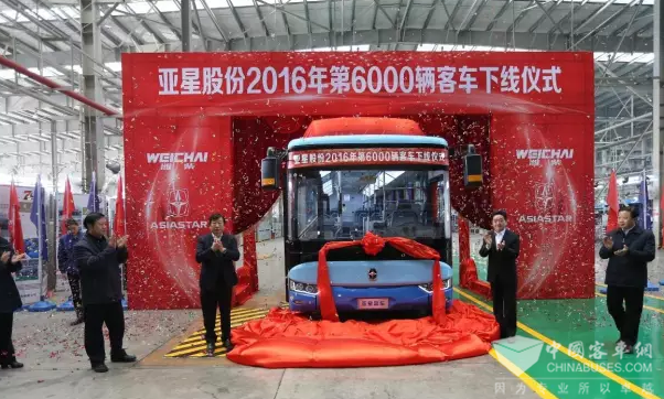 2016年12月27日,亚星客车第6000台客车下线仪式在亚星厂区隆重举行。扬州市市长张爱军、潍柴集团董事长谭旭光以及扬州市相关直属部门领导、山东重工潍柴集团相关领导出席本次下线仪式。