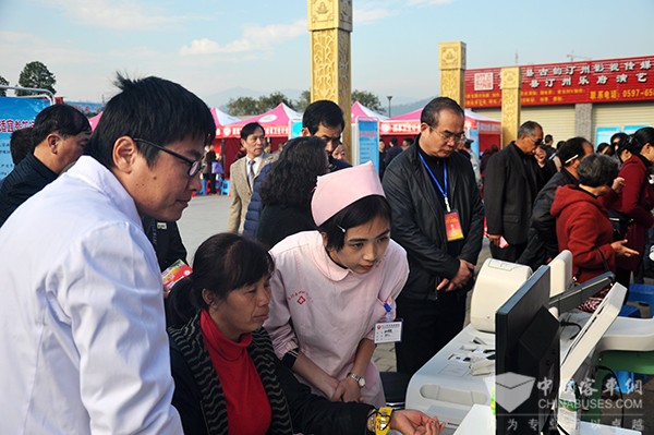 当日10时,在长汀客家母亲缘广场,“三下乡”活动启动仪式吸引了长汀县5000余名父老乡亲驻足观看,其中107位观众当场体验了服务车的体检功能,并且马上就拿到了打印的检测结果,乡亲们纷纷树起大拇指:“太方便了,比去医院省时又省力”。